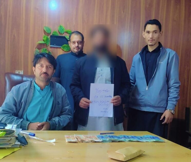 ایف آئی اے کمپوزٹ سرکل سکردو نے کاروائی کرتے ہوئے محکمہ برقیات سکردو کے ملازم کو رشوت لیتے ہوئے رنگے ہاتھوں گرفتار کر لیا۔ترجمان ایف آئی اے کے مطابق چھاپہ مار کاروائی یادگار چوک سکردو پر کی گئی۔